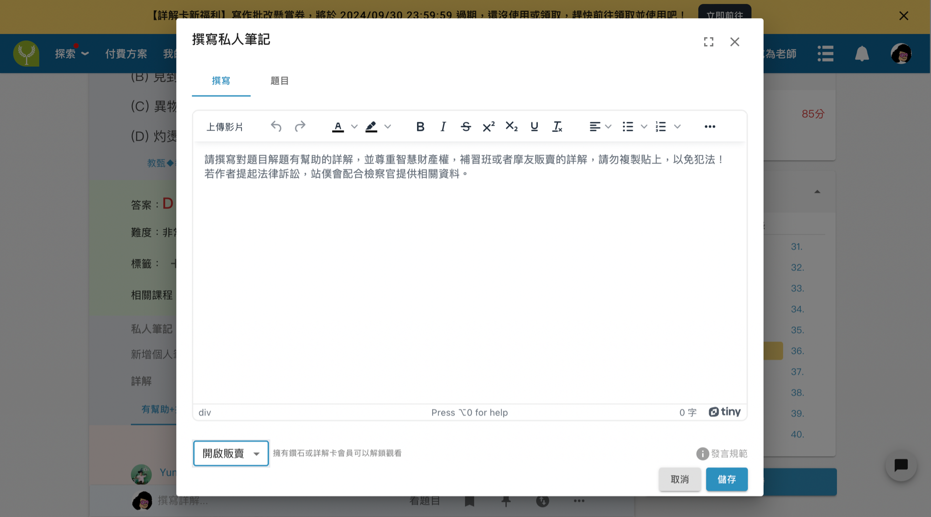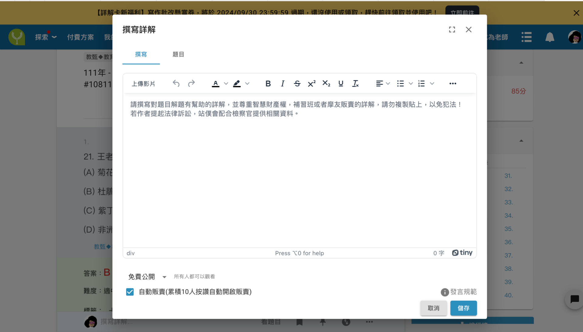 發現題目下的詳解區中,有些詳解是鎖起來的,需要用鑽石才能觀看。